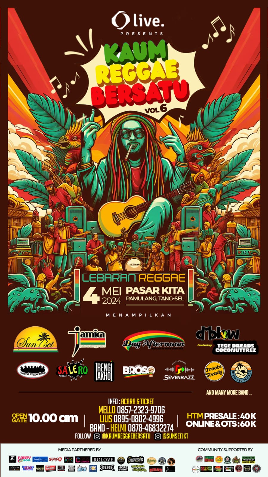 SAVE THE DATE‼️ Let's... Lebaran reggae Yooomaaann..... Kita nikmati lebaran reggae bareng komunitas2 reggae yang ada.. Nyanyi & Goyang Bareng... Sing a Long.. Organized by Othman Media Kreasindo, Follow @othman.media @kaumreggaebersatu @sunsetband @othlive Serruuuu kan??? CATAT TANGGAL NYA!! KAUM REGGAE BERSATU vol.6 Sabtu, 4 Mei 2024 Pukul 10.00-23.30 WIB di Pasar Kita Tangerang Selatan Buruan Langsung Dan Ramaikan.... ARE […]